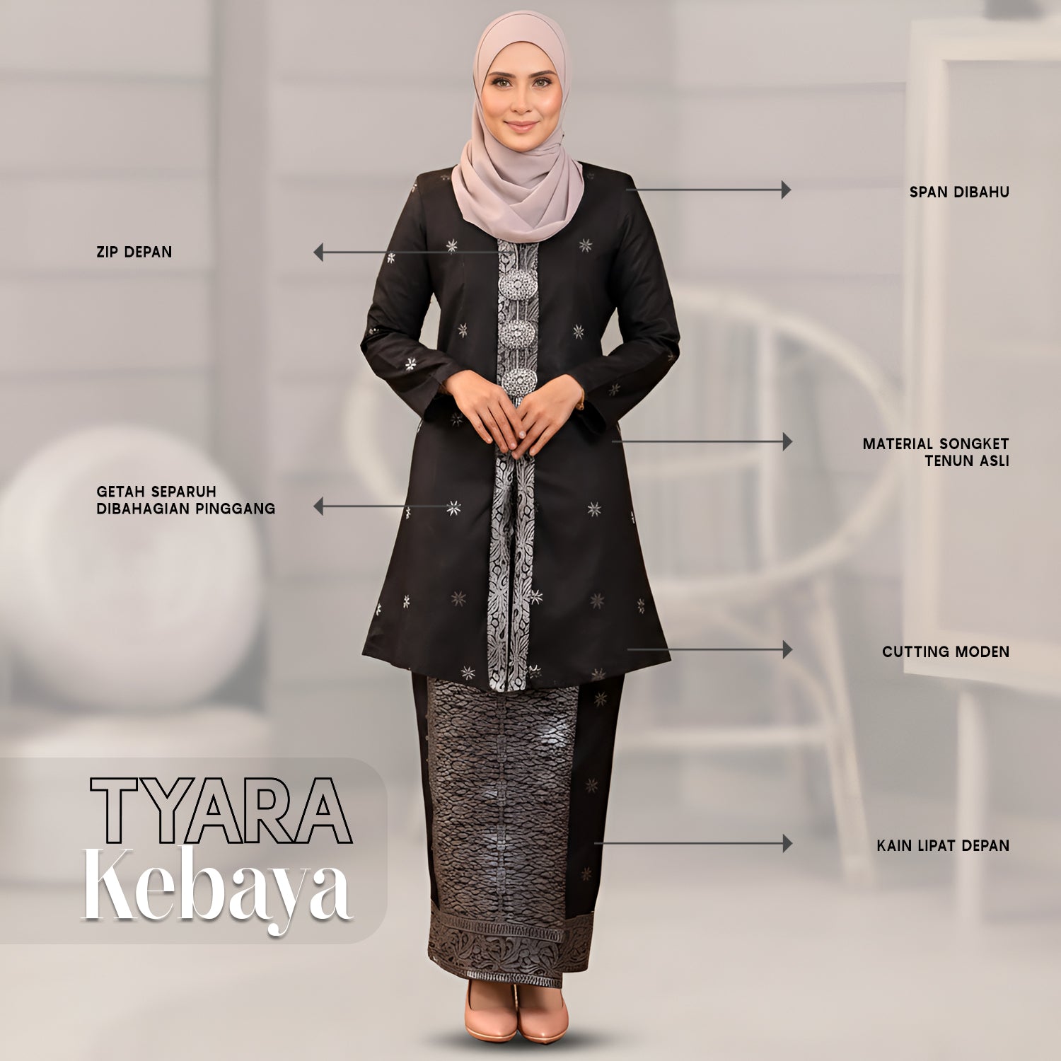 KEBAYA TYARA BLACK SILVER-1001